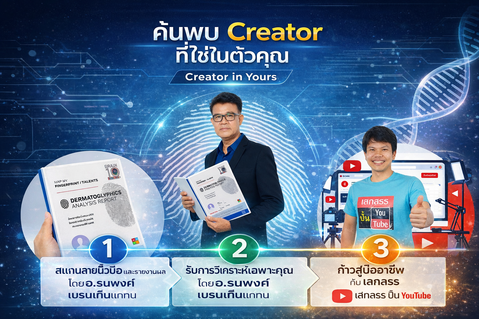 #ค้นพบตัวตน #ครีเอเตอร์ที่ใช่คุณ #สแกนลายนิ้วมือค้นหาพรสวรรค์ #นวัตกรรมวิทยาศาสตร์ลายนิ้วมือ #BrainTenScan #สร้างPersonalBrand #เสกสรรปั้นYouTube #CreatorInfluencer #พัฒนาศักยภาพมนุษย์ #รู้จักตัวเองก่อนสำเร็จ
